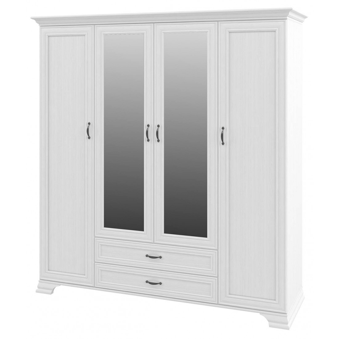 Шкаф Юнона МН-132-04 от фабрики Мебель-Неман - это четырехстворчатый шкаф для одежды с зеркалом в классическом стиле с отделкой структурной фактуры, обрамленный рамочным фасадом, где металлические ручки выгодно подчёркивают стиль и изящество, всегда актуален и востребован.
