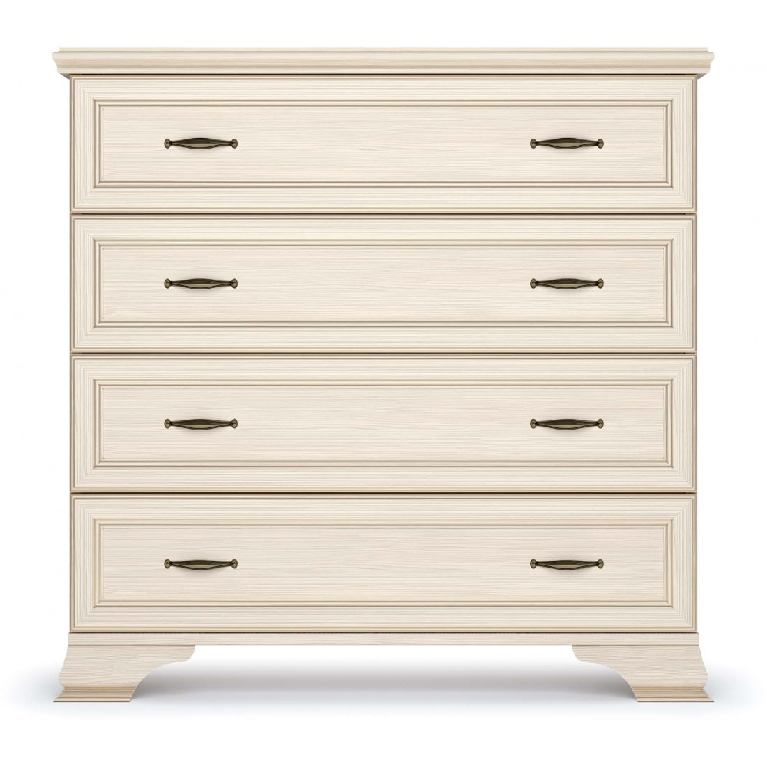 Коллекция производится в текстуре «бодега белый» с эффектом золотого патинирования. Облик «Сиены» дополняют рамочные фасады и карниз в классическом стиле, а также эффектные опоры из МДФ. Мебель комплектуются металлической лицевой фурнитурой премиум-класса в цвете «старая бронза» и надежной крепежной фурнитурой.