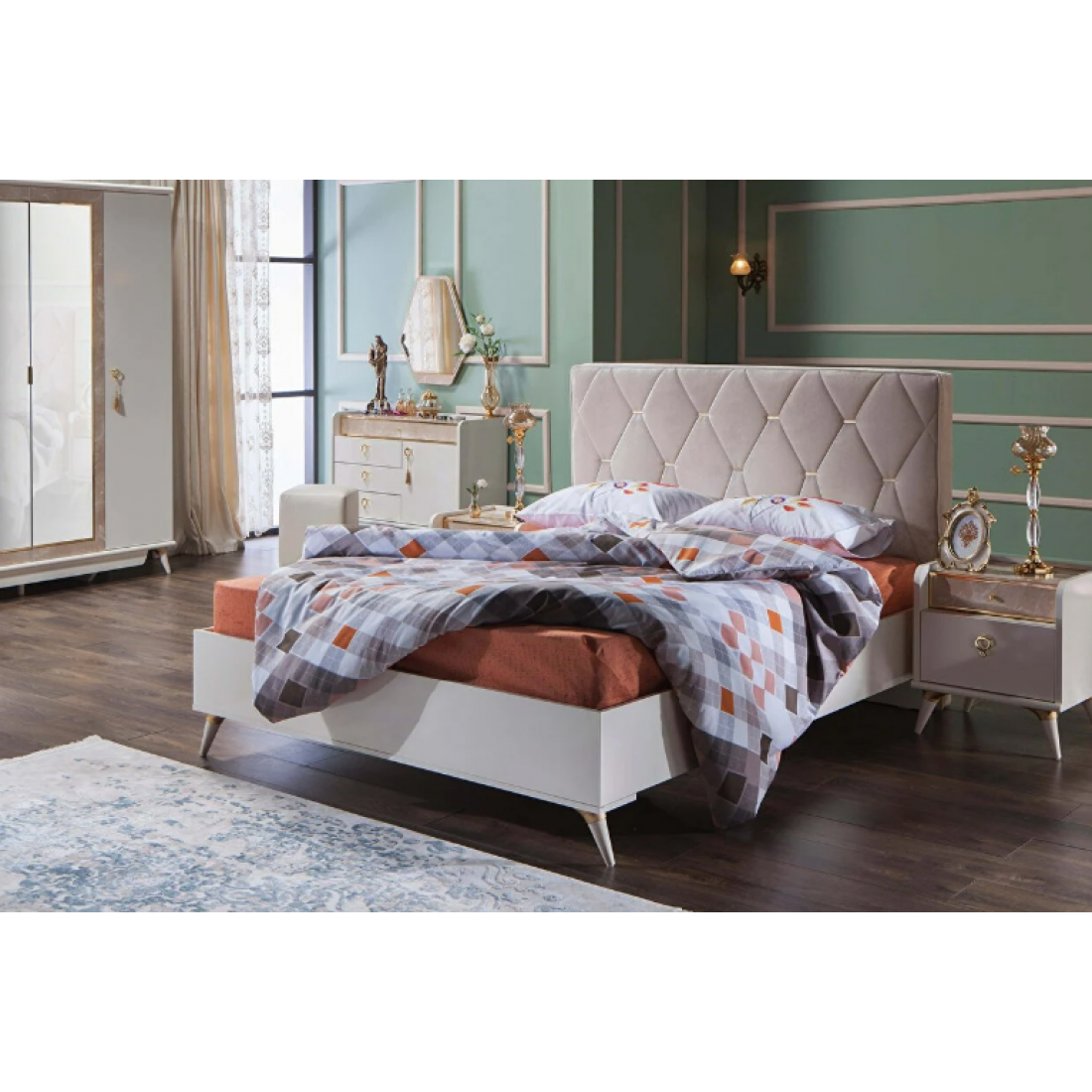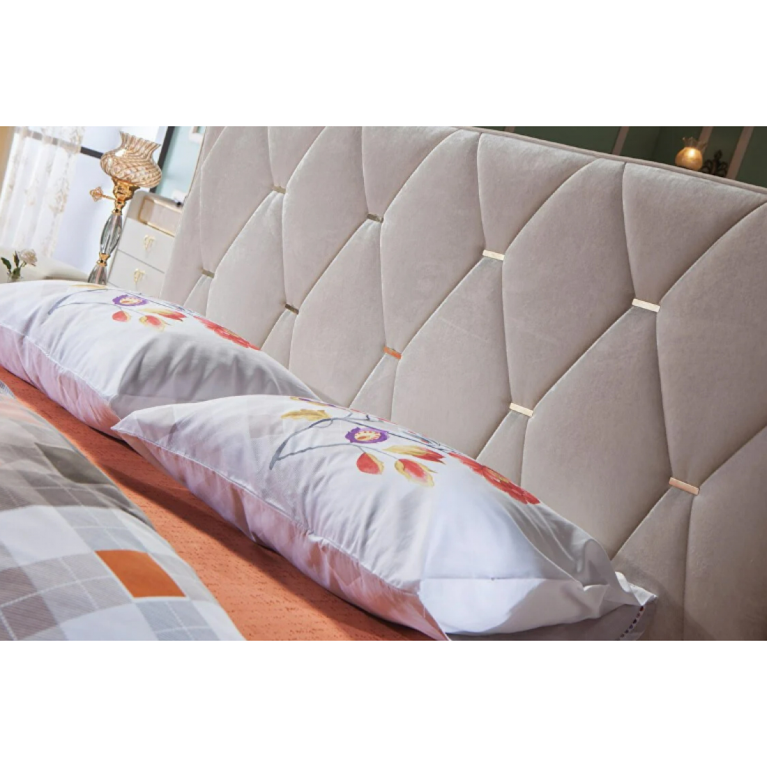 Кровать Monreal со стеганным тканевым изголовьем с металлическими вставками. Изготавливается на спальное место 180х200 см.