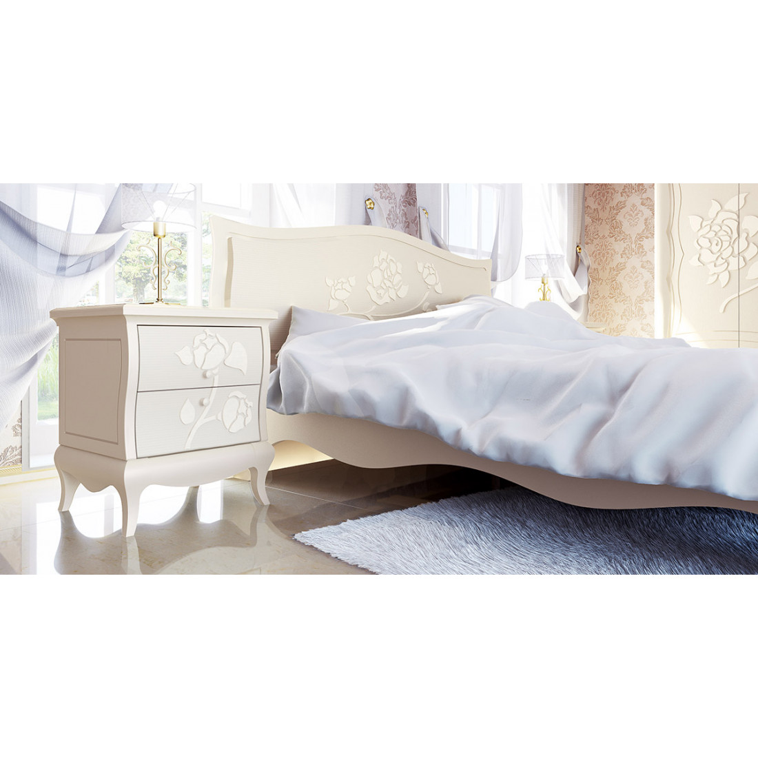 Прикроватная тумба для спальни МН-218-02 серии Астория от Мебель-Неман в стандартной конструкции с двумя выдвижными ящиками смотрится свежо и оригинально, благодаря изящному оформлению. Купить прикроватную тумбу «под старину» стоит в дополнении к кровати – чтобы добавить комфорта в ежедневный отдых.