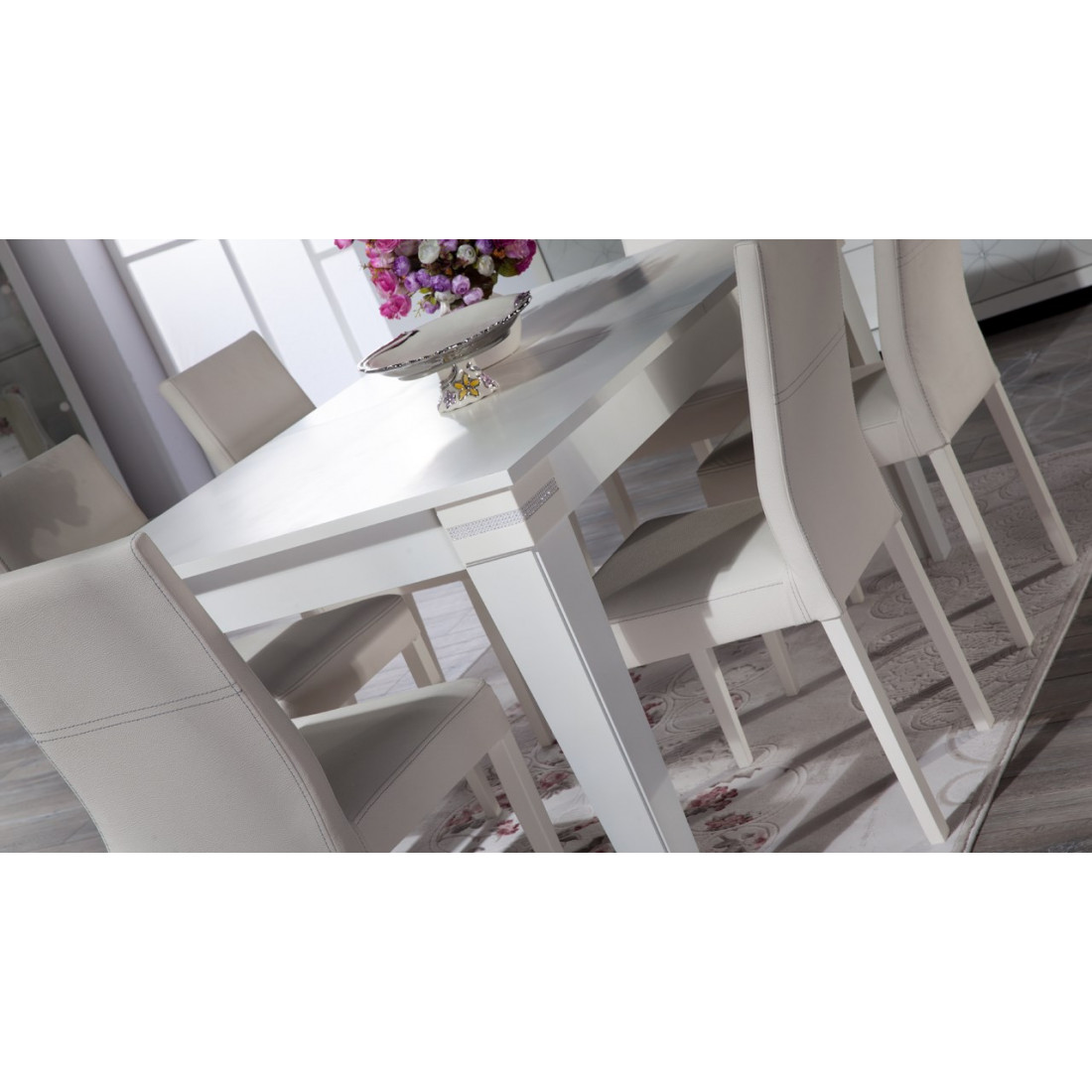 Раскладной обеденный стол MIRA-04 (белый) серии Мира от Беллона обладает оптимальными размерами для столовой, гостиной средних размеров или просторной кухни. В сложенном виде за ним комфортно расположится семья из шести человек, в конструкции предусмотрена вставка, увеличивающая модель в длину на 40 см. Купить раскладной стол рекомендуем со стульями – комплект из шести стульев по акции стал доступней!