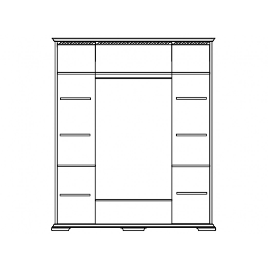 Четырехдверный шкаф Лика экономно использует площадь помещения, предоставляя достаточно пространства для хранения одежды, белья и других вещей.