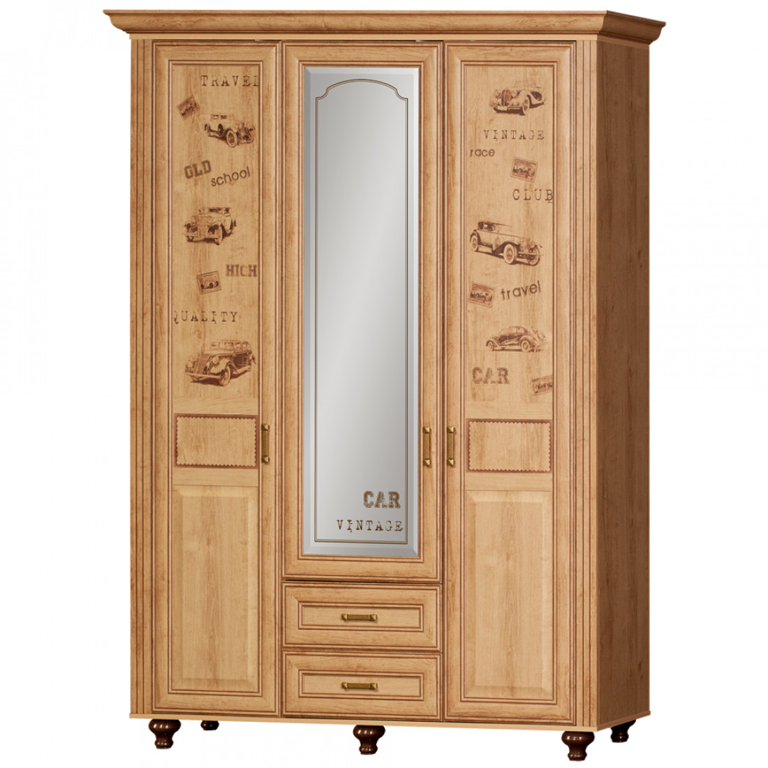 Четырехстворчатый шкаф для одежды с зеркалом Амели АМШ1/4 (дуб)