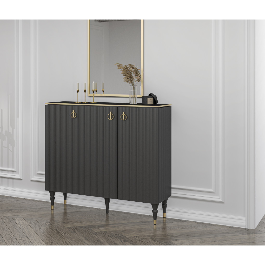 Большая тумба в гостиную МН-043-06 серии Лоренсо от фабрики Мебель-Неман.Петли с доводчиками, рассчитанные на десятки тысяч циклов закрывания, работают плавно и бесшумно.Фасады и боковые панели в коллекции Лоренсо выполнены с инновационным покрытием Serica от итальянских производителей. Это современное, матовое, антибликовое покрытие, приятное на ощупь SOFT-TOUCH. Поверхность защищена от царапин, благодаря специальной обработке. При возникновении микродефекта, его можно легко устранить с помощью термического сглаживания. Технология ANTI-FINGERPRINT гарантирует отсутствие отпечатков пальцев на фасадах.